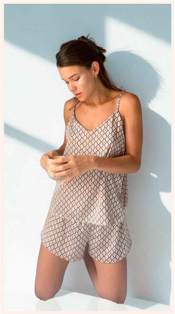 El PIJAMA AURORA es un conjunto de top lencero, sumamente delicado, femenino y canchero a la vez.
